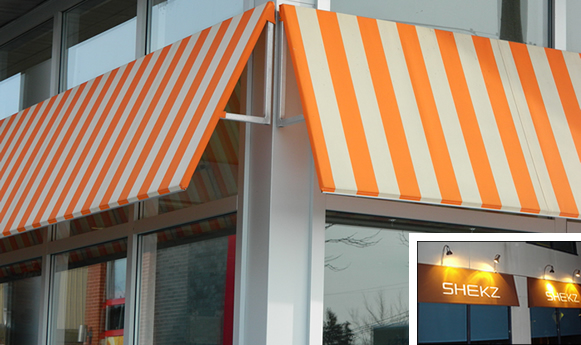 This type of Awning is particularly recommended for business purposes. We can add your publicity or customized logo. Can be lit up from inside or outside with goose neck fixture.