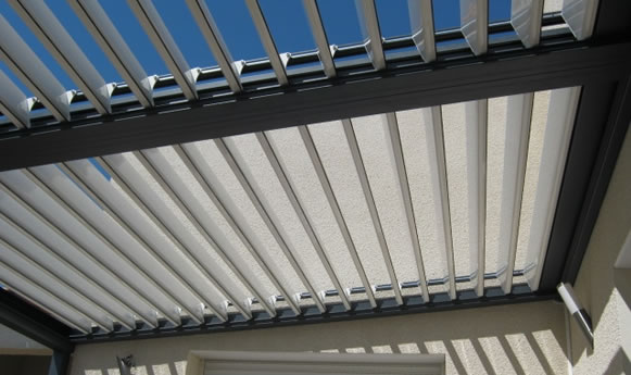 Revolving slat awnings are a three season product. It cuts UV rays and reduces the greenhouse effect. This new generation of awnings allows natural ventilation.
